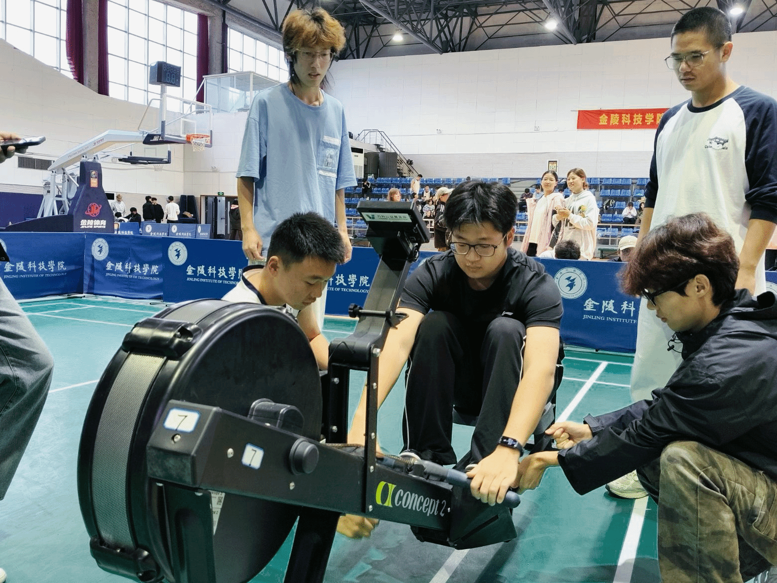 williamhill威廉希尔近日在南区体育馆参加学校首届陆上赛艇预选赛,凭借奋勇争先的竞技风采与配合无间的团队力量斩获佳绩——男子赛艇队勇夺第二名,女子赛艇队荣获第六名,成功进入陆上赛艇决赛,为学院再添荣誉新章。