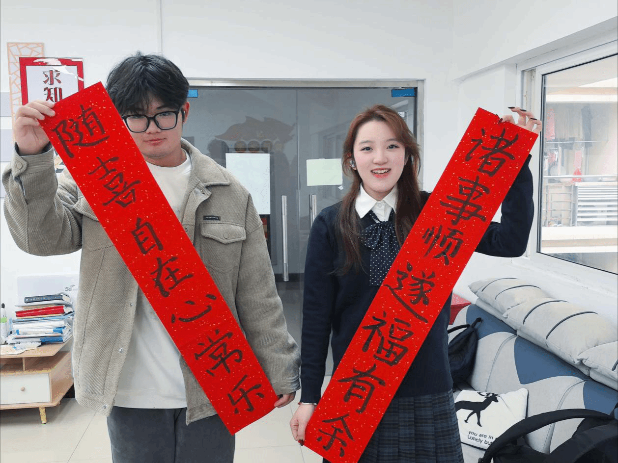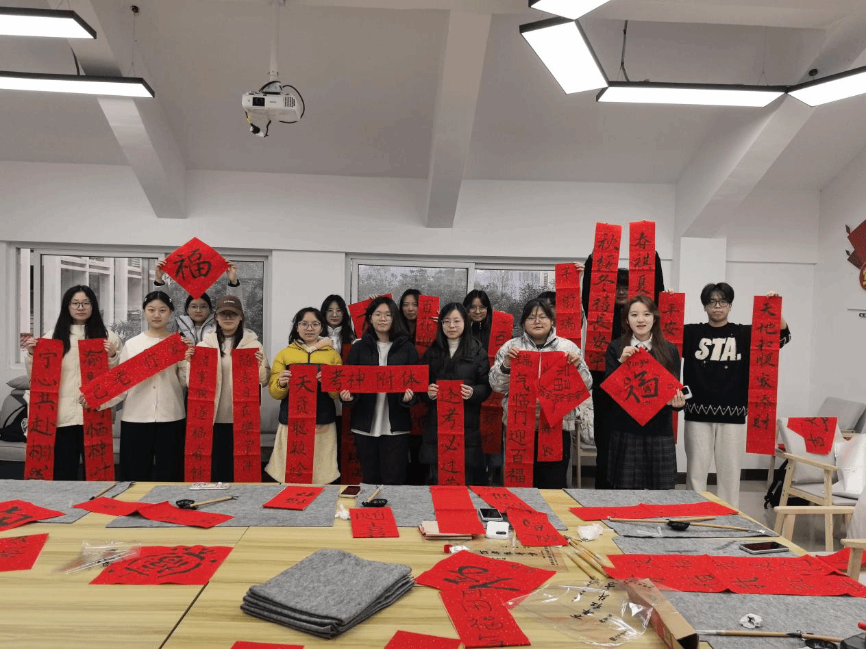 此次活动将传统文化与社区育人相结合,是学院推进“五育并举”、加强人文关怀的切实举措,不仅增强了同学们对学院的归属感和宿舍的凝聚力,更在墨香中疏导了焦虑情绪,激励同学们以更加积极平和的心态迎接挑战。活动结束后,同学们纷纷将书写的春联和“福”字点缀于宿舍门前,为冬日校园增添一抹温暖的亮色。(撰稿:赵志伟 审核:韩铖)
