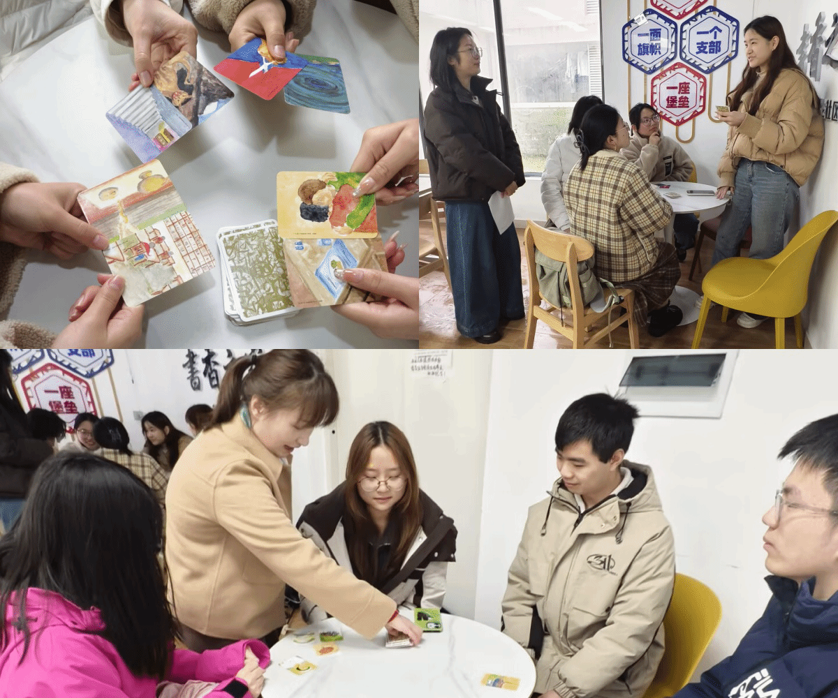 活动以OH卡为核心工具,通过团体探索、互动分享的形式,让参与者在安全包容的氛围中探索情绪、梳理压力,收获专属解压方案。活动设置“情绪扫描仪”“压力放大镜”“解药盲盒”“情绪祝福卡”四大核心探索环节,依次引导同学们觉察当下情绪、梳理压力来源、制定专属解压方案,并通过情绪祝福卡传递同伴支持,在齐声喊出“我接纳我的所有情绪,我能照顾好自己”的口号中,深化情绪接纳与自我关怀的认知,感受同伴支持的力量。