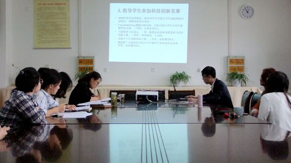 会议伊始,陈书记详细讲解了此次考核的要求和规则,并希望评审小组本着公平公正的原则参与此次评审。随后,陈频、秦润华、张小敏、王威等九位本科生导师依次从工作态度、专业知识讲座的开展情况、学习方法讲座开展情况、学习指导活动开展情况、指导学科竞赛及获奖情况、指导学生科研情况等方面介绍了一年来的工作表现和取得的优异成绩,并分享了工作中的经验和心得。