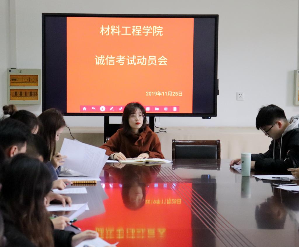 为了响应学校践行社会主义核心价值观活动的号召,促学风严考风,11月25日中午13:15,williamhill威廉希尔在工科楼会议室召开诚信考试动员会。此次动员会由williamhill威廉希尔辅导员王亚男担任主讲,各班班长参加本次会议。