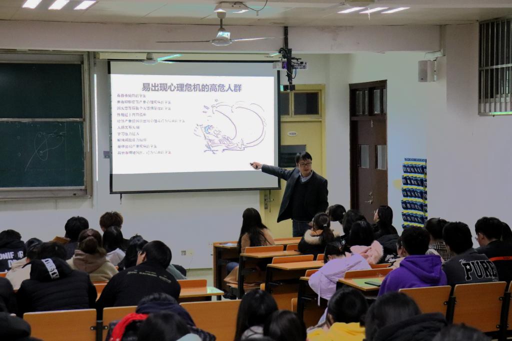 会议伊始,王志琳副教授以一个大四学生的独白为例,指出大学学业、现实遭遇、心理落差等因素均会引发心理危机,从而进一步阐述了心理危机的内涵。随后,王志琳副教授就心理危机的识别方法、临床表现和发展结果三个方面进行指导并提出注意要点,希望同学们要重视引起心理危机的新因素,能够做到未雨绸缪。最后,王志琳副教授给出发现宿舍心理危机后的处理方法:发现者向院系和心理健康教育中心及时报告当事人的基本信息、现状、影响以及报告者的处理方法,并建议同学们遇事时能够沉着冷静,学会从多角度思考问题。