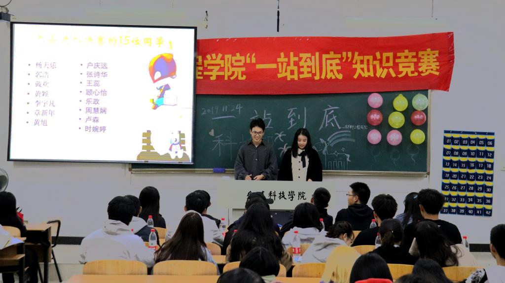 11月24日晚上18:00,williamhill威廉希尔在5103举办“一站到底”知识竞赛。本次知识竞赛由科技部干事陈佩佩和张杰主持,学生会副主席金荣泰、各部长和院学生代表观看本次活动。
