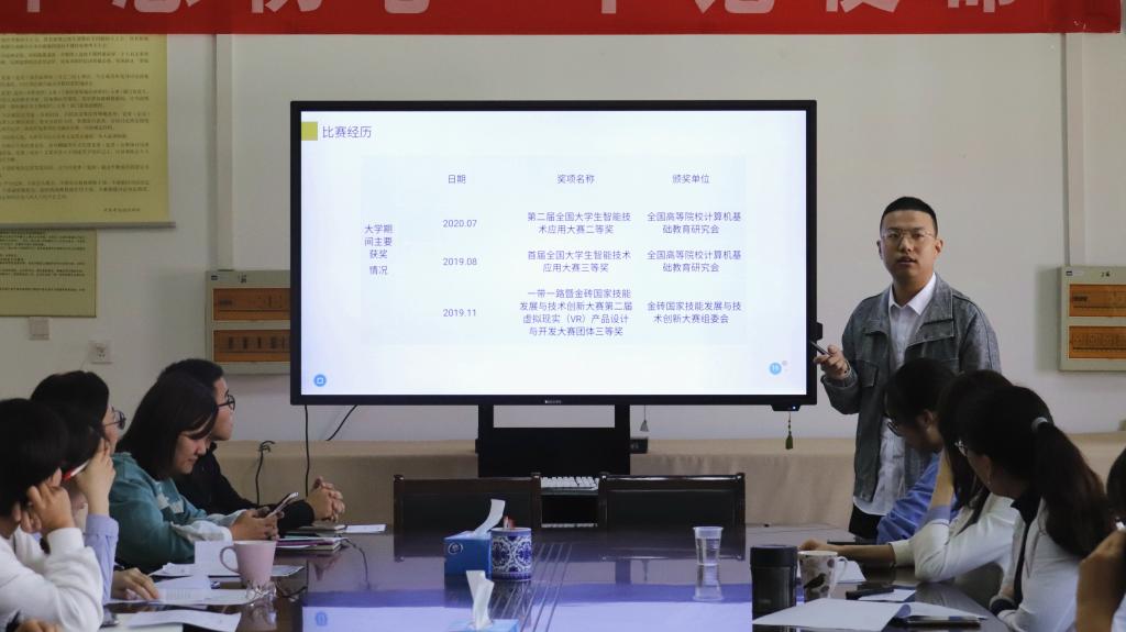会议伊始,张瑛鹦老师介绍了2020年国家奖学金评审的规则和流程。陈智慧副书记对国家奖学金的评审条件做了说明,并强调评审一定要秉承公平公正的原则,为同学们评选出德智体美劳全面发展的学生模范。六名国家奖学金候选人按照抽签顺序依次上台,通过限时演讲展示自己在学习、科研、学生工作、社会实践、竞赛获奖、课外活动等方面取得的成绩,他们自信激昂的展示赢得现场评委的阵阵掌声。