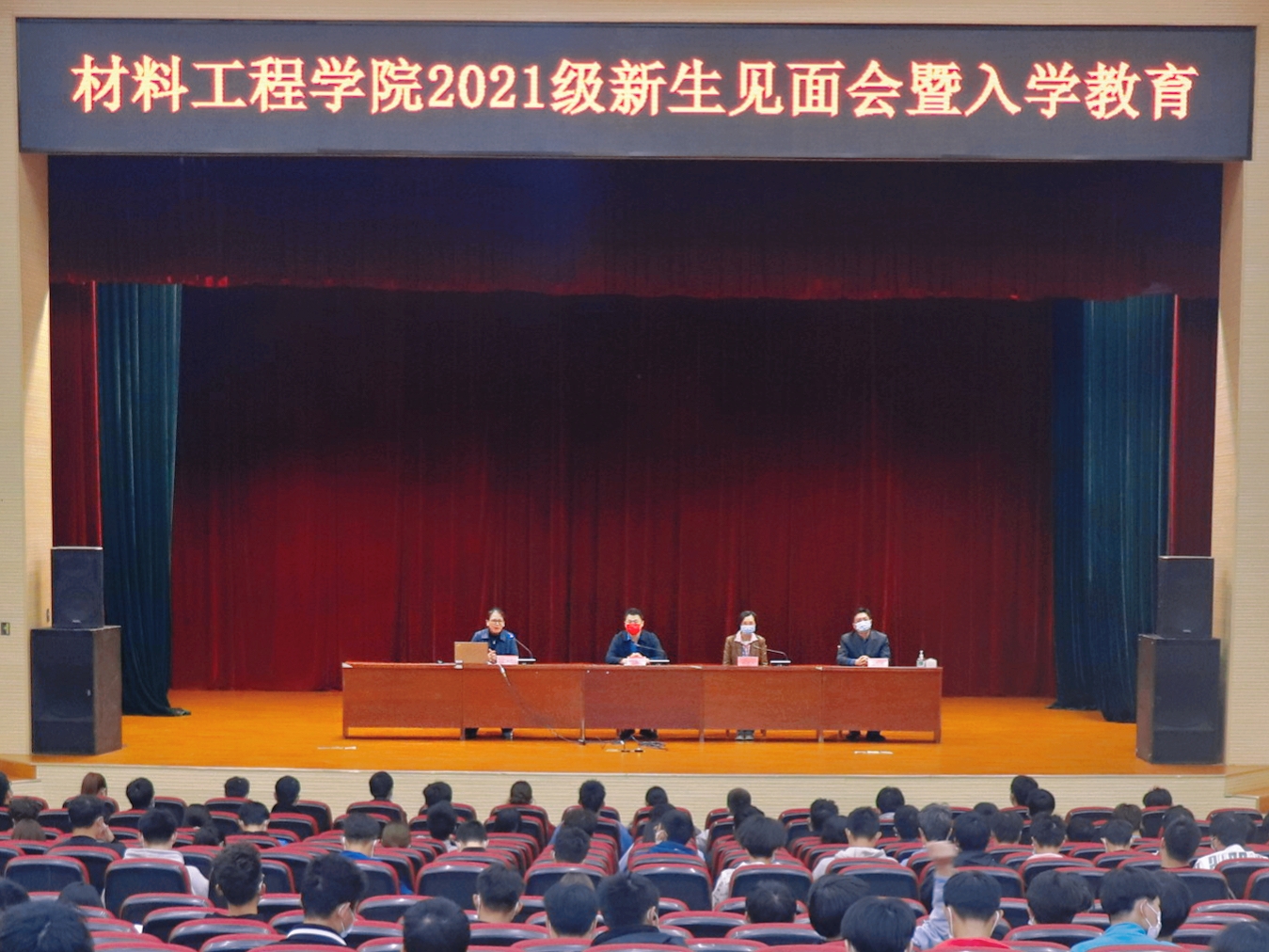 活动伊始,陈智慧副书记对新同学加入材料学院大家庭表示了热烈的欢迎,随后向新生依次介绍了列席的各位学院领导。郝凌云院长送给新生“充实、快乐”的期待和祝福。叶原丰书记代表学院全体老师和老生对395名新生表示了热烈的欢迎,希望孩子们“耐得住寂寞、拨得开迷雾、守得住初心”,成社会栋梁之才,“不负青春年华,逐梦砥砺前行”。老师们的谆谆教诲定能在同学们的心中种下勤奋刻苦的种子,燃起科学探索的热情。随后,辅导员和教务老师跟大家一起学习并讲解了学校学院的管理政策与制度,对安全、反网络诈骗等工作做了强调,希望同学们自觉遵守大学生文明规范和校纪校规。