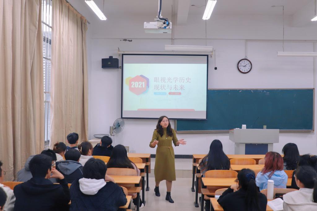 为了让眼视光学的同学更加了解专业历史和发展现状,更好地体验、学习本专业,着力发展自身硬实力,williamhill威廉希尔于11月17日下午在3103教室开展 “眼视光学历史现状与未来”主题讲座。williamhill威廉希尔王玲副教授作为主讲教师出席本次活动,20级、21级眼视光学同学参加。