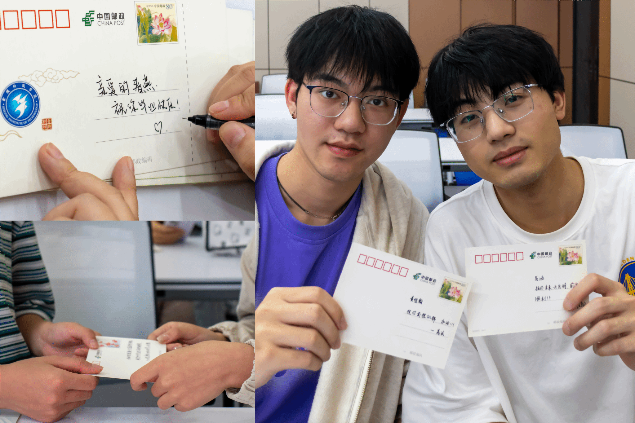 活动现场,低年级同学与毕业生结成对子,互相交流自己的大学经历,分享学习或求职过程中的困惑、迷茫、喜悦等,气氛十分热烈。接着,每位同学都拿到了一张精美的明信片,大家纷纷提笔用涂鸦或文字写下祝福与感谢。“祝你毕业快乐”、“祝你早日升职加薪”、“祝你实验顺利,再攀高峰”……一张张明信片承载着同学们对即将毕业学长学姐的衷心祝福,也传递着毕业生们对学校、老师、学弟学妹和四年大学生活的深切情感。