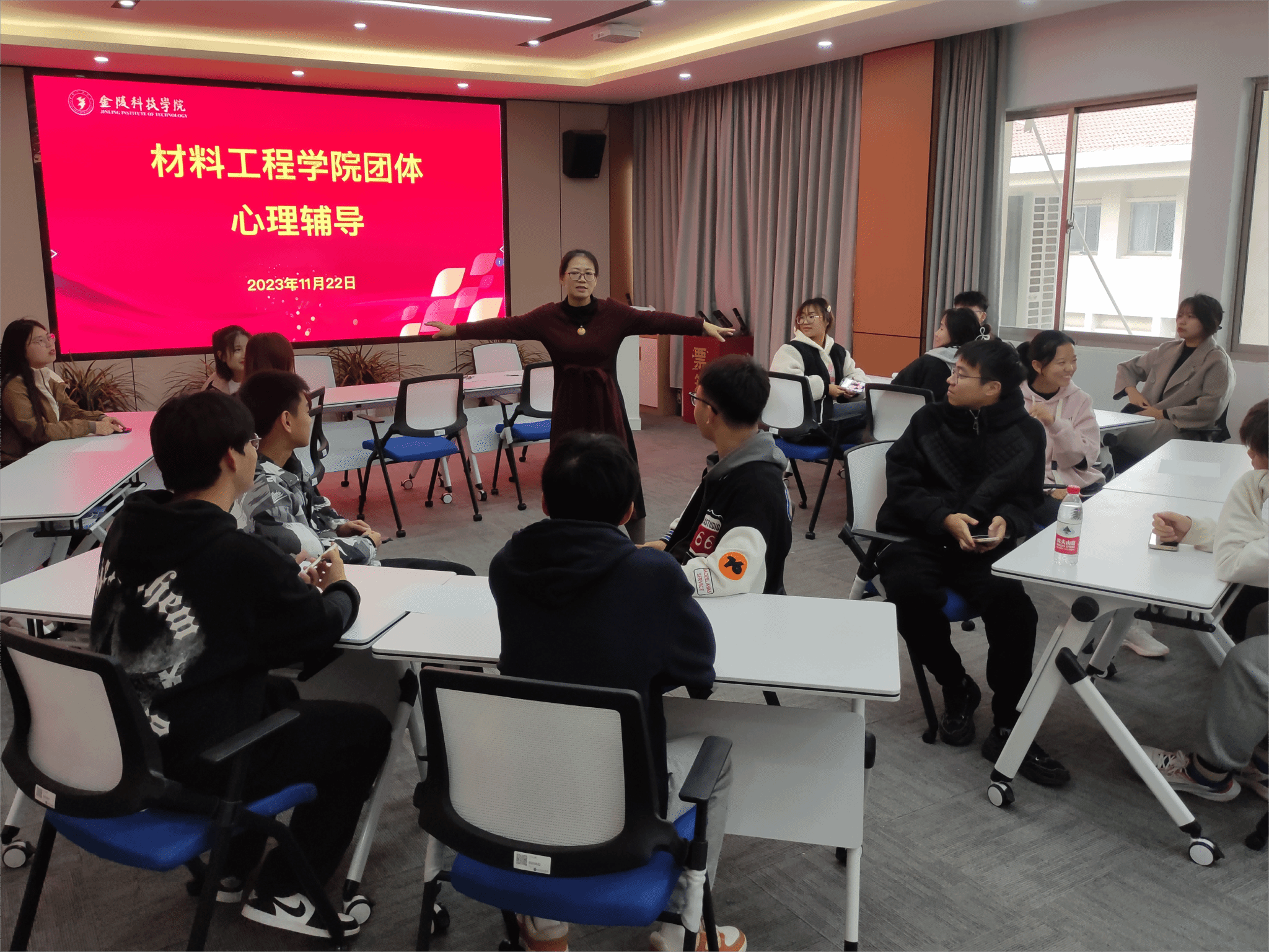 为了帮助同学们更好的认识压力,培养积极应对压力的能力,以更加积极的态度面对学习与生活,williamhill威廉希尔于11月22日下午在知行楼A506会议室开展以“应对压力”为主题的团体心理辅导活动,williamhill威廉希尔党委副书记陈智慧主持本次活动,23级心理委员与方舟心理社成员参加。