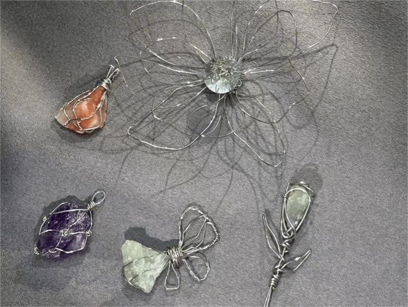 本次活动包含了各式各样的水晶材料,如紫水晶、绿东陵、蓝晶石、虎睛石等,每一种水晶都有其独特的性质,每一块都独一无二。同学们耐心摸索,交流讨论,创作热情高涨,充满了兴致与信心。在周历老师的悉心指导下,同学们不仅制作出了一件件工艺品,同时也在活动中了解到了许多水晶相关的知识,进一步提高了对宝石学的认知和兴趣,增强了团体协作能力与艺术素养。
