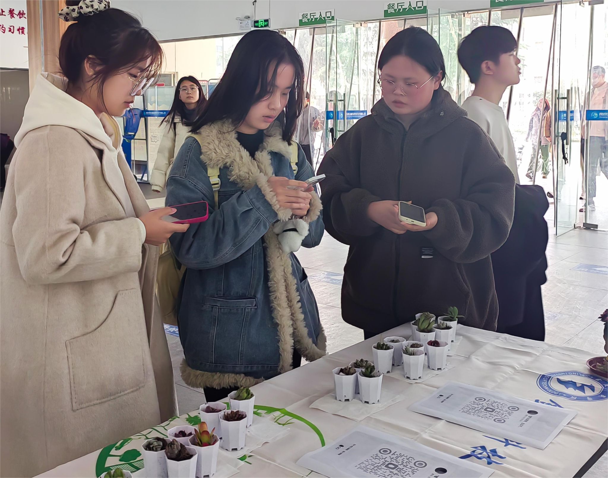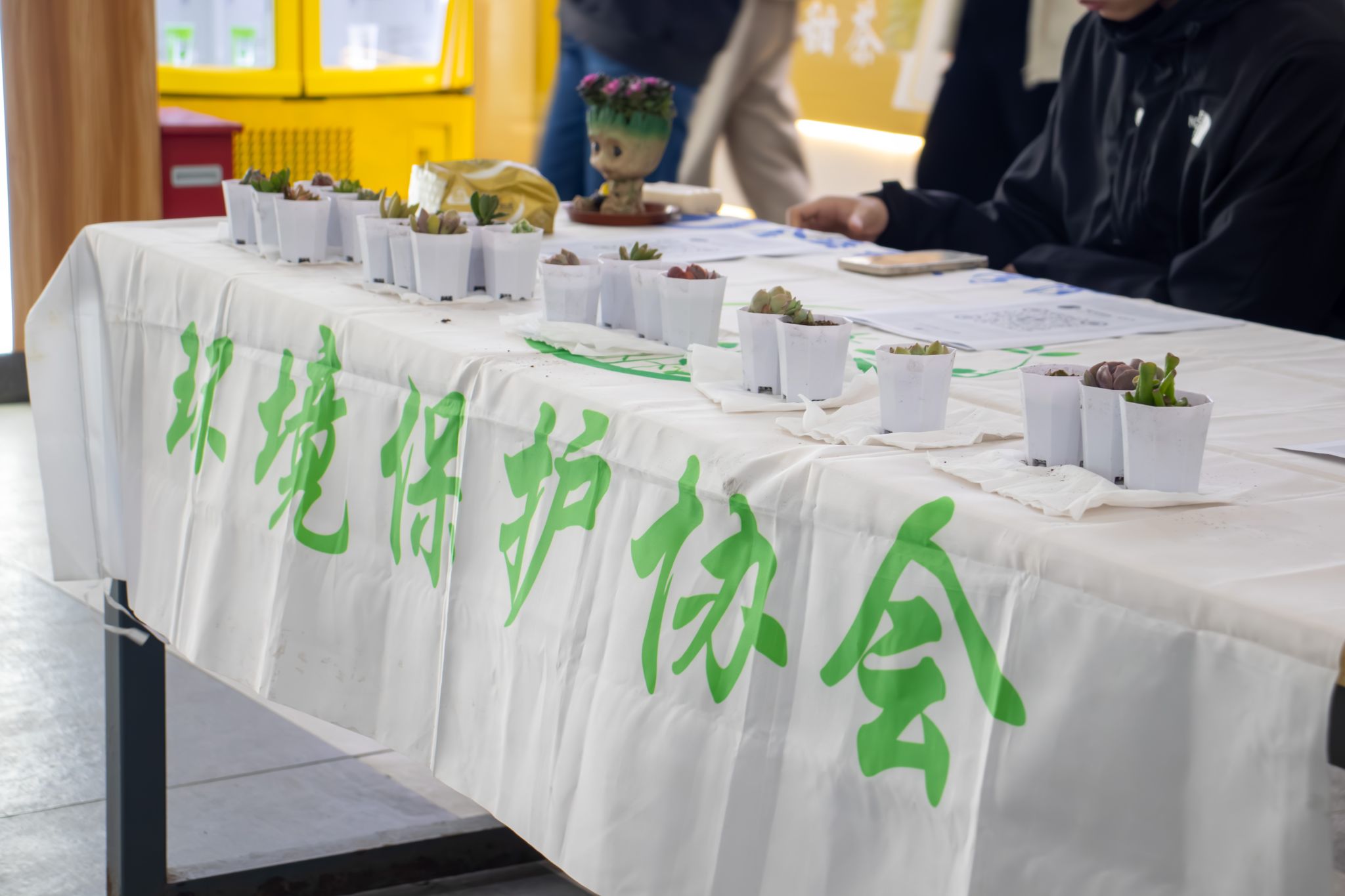 活动现场,同学们通过DIY的形式制作环保卡片,用诗句寄语着对绿色家园的向往和期待,用图案展示着对环保的理解和创意。卡片制作完成后,参与者通过线上投票的方式参与评奖,让环保理念在互动中得以传播。此外,每位参与者都能现场领取一盆多肉植物,把绿色带回宿舍、带入校园,成为他们生活中的一部分。此次活动不仅是一次环保行动的展示,更是一次环保教育,同学们纷纷表示以后要从小事做起,保护校园环境。