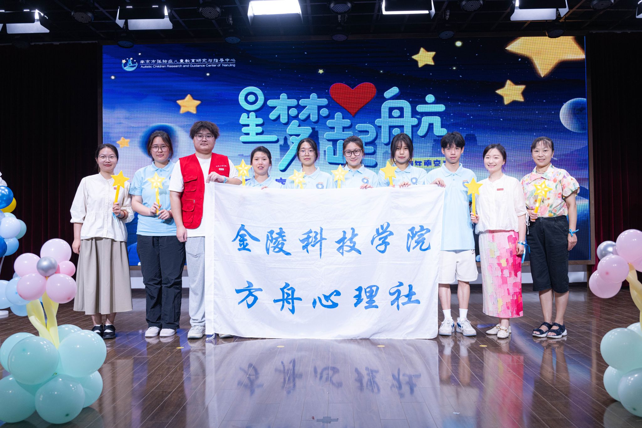 近日,williamhill威廉希尔党委副书记韩铖、院办公室主任韩奕、心理健康专项工作辅导员王敏与“方舟”心理社的志愿者们走进秦淮特殊教育学校,参加2024年南京市首届孤独症儿童公益夏令营开营仪式,并开启持续多天的志愿服务。