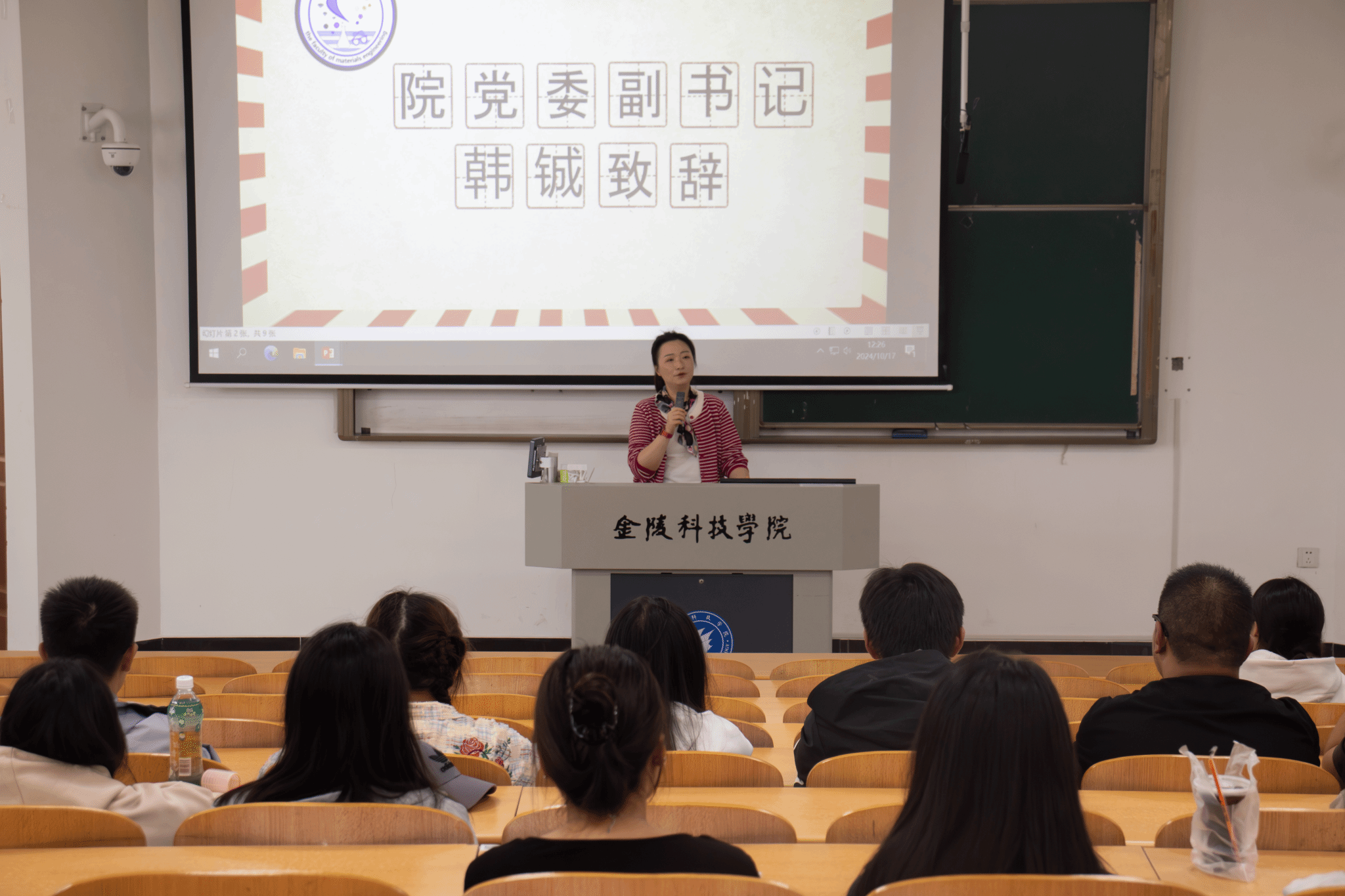 首先,韩书记对新加入学生会的24级学生骨干表示祝贺与欢迎,同时以同学们加入学生会的初衷为切入点,对全体学生骨干提了四点希望和要求:第一,要严于律己,心存敬畏,做到吃苦在前,享乐在后;第二,要有责任担当,积极投身工作同时注重工作效率;第三,要注意个人言行举止,为同学做好榜样;第四,要用好学校平台,实现专业学习和工作学习齐头并进。随后,韩书记再次强调坚守初心的重要意义,希望同学们在自己今后的学习和工作中坚持做到不忘初心,奋楫笃行。邵老师则向大家详细介绍了院学生会的情况,激励鼓舞同学们齐心协力,让学生会成为一个优秀、团结、温暖的大家庭。最后,各学生会主席分享了自己任职以来的工作经验,几位学生会部长也具体介绍了各部门的工作内容与注意事项。