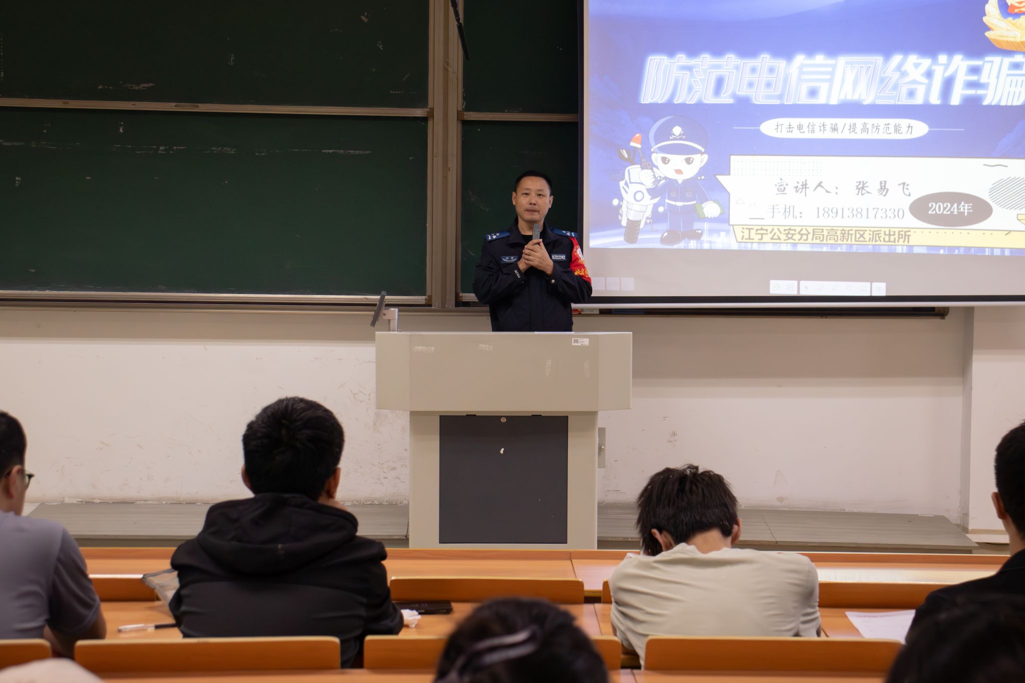 为切实做好防范电信网络诈骗宣传教育工作,加强反诈力度,williamhill威廉希尔特邀江宁公安分局高新区派出所的张易飞警官于10月14日至18日分批次对全院学生开展了反诈宣讲会,我院学子积极参加宣讲会,认真聆听与学习。