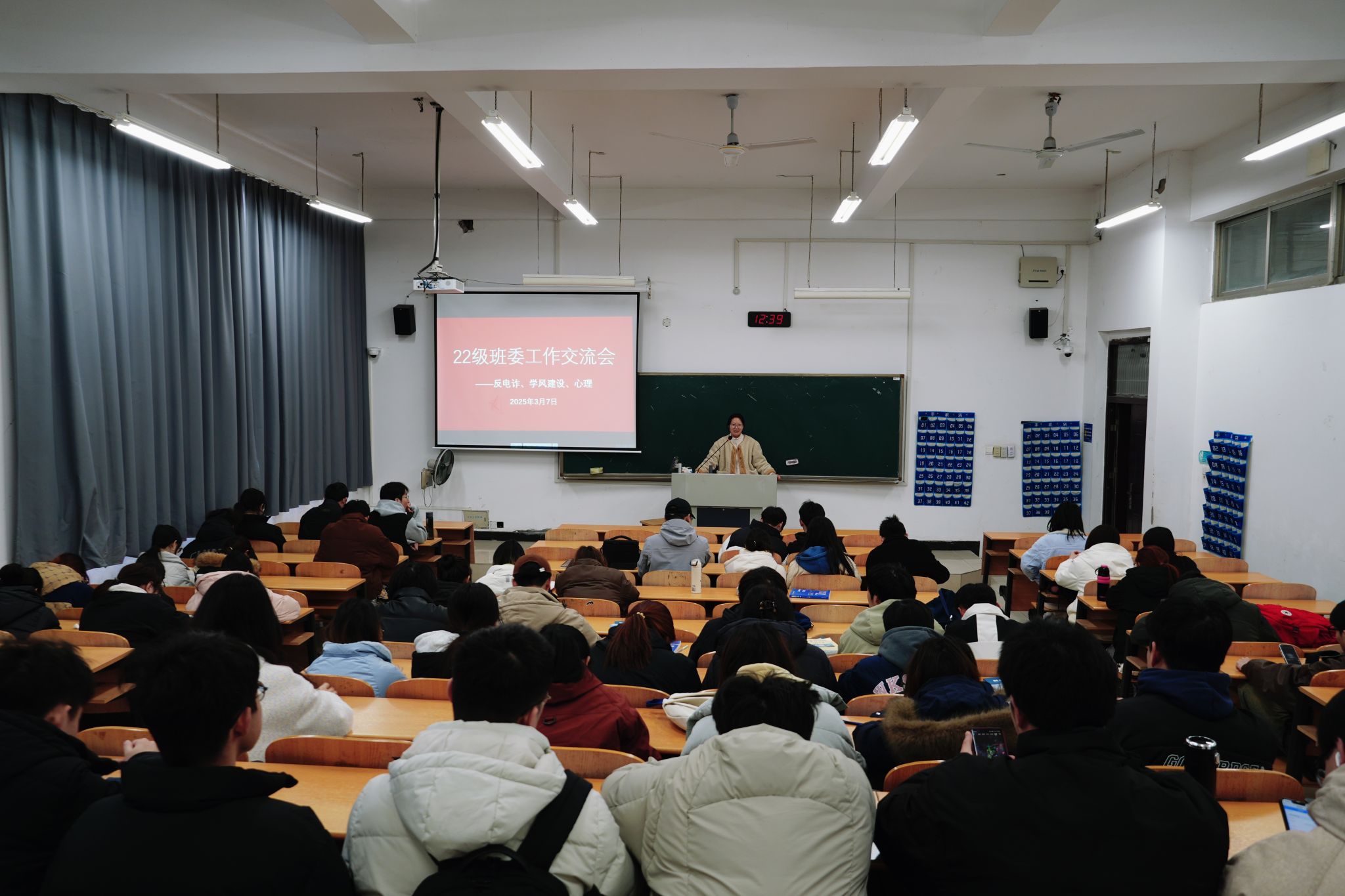 为帮助同学们提高安全意识,明确学习目标,保持积极心态,为接下来的学习和生活奠定坚实基础,williamhill威廉希尔于3月7日中午在QY1104教室召开了学生骨干培训会。本次班会由辅导员王敏主讲,围绕防范电信诈骗、加强学风建设和关注心理健康三个方面展开,22级全体班委参加。