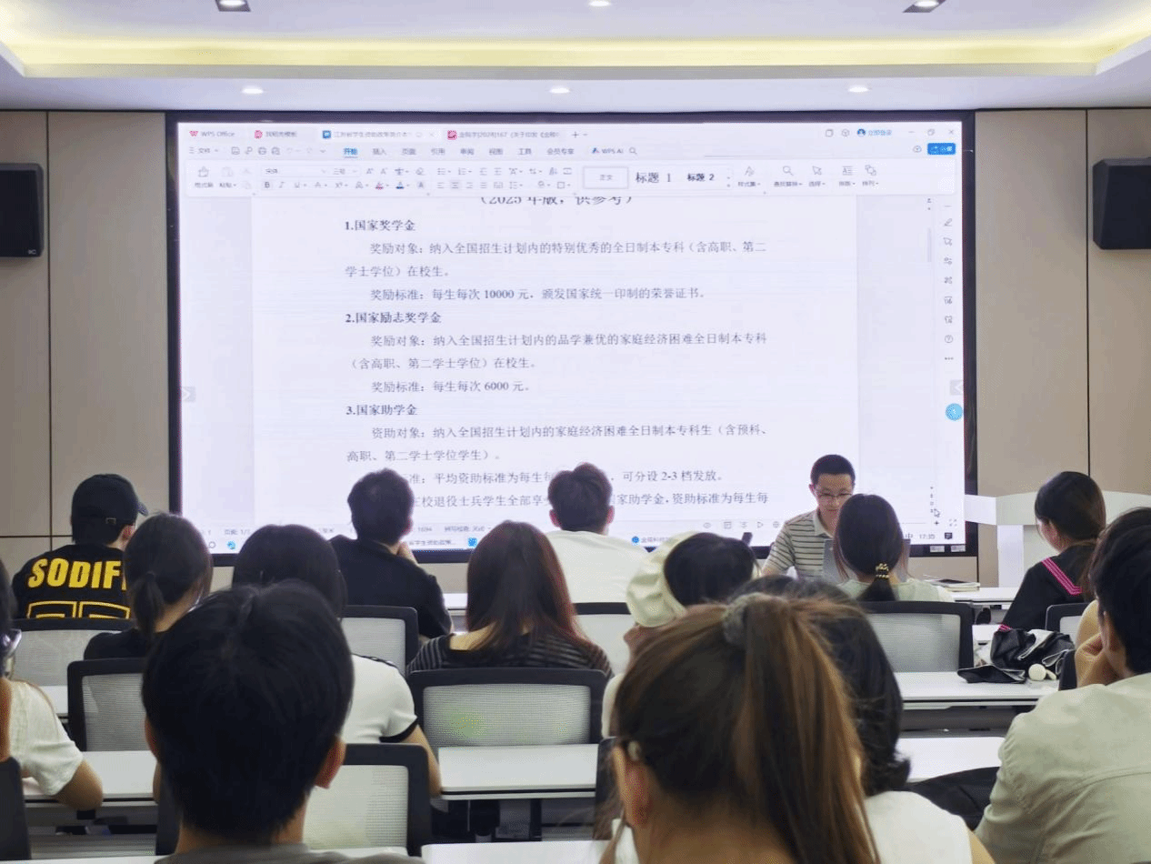 宣讲会上,赵老师系统解读了国家资助政策体系,详细介绍了生源地信用助学贷款、国家助学金、国家励志奖学金、学费减免等政策的申请条件、流程及注意事项。针对校内资助,赵老师播放了我校学生资助政策宣传片,重点讲解了学校发展型专项资助及学校、学院资助育人活动的开展情况,并就学生提出的问题进行了详细解答。最后,赵老师鼓励同学们要秉持自强不息精神,积极进取,树立诚信意识,做时代诚信学子。