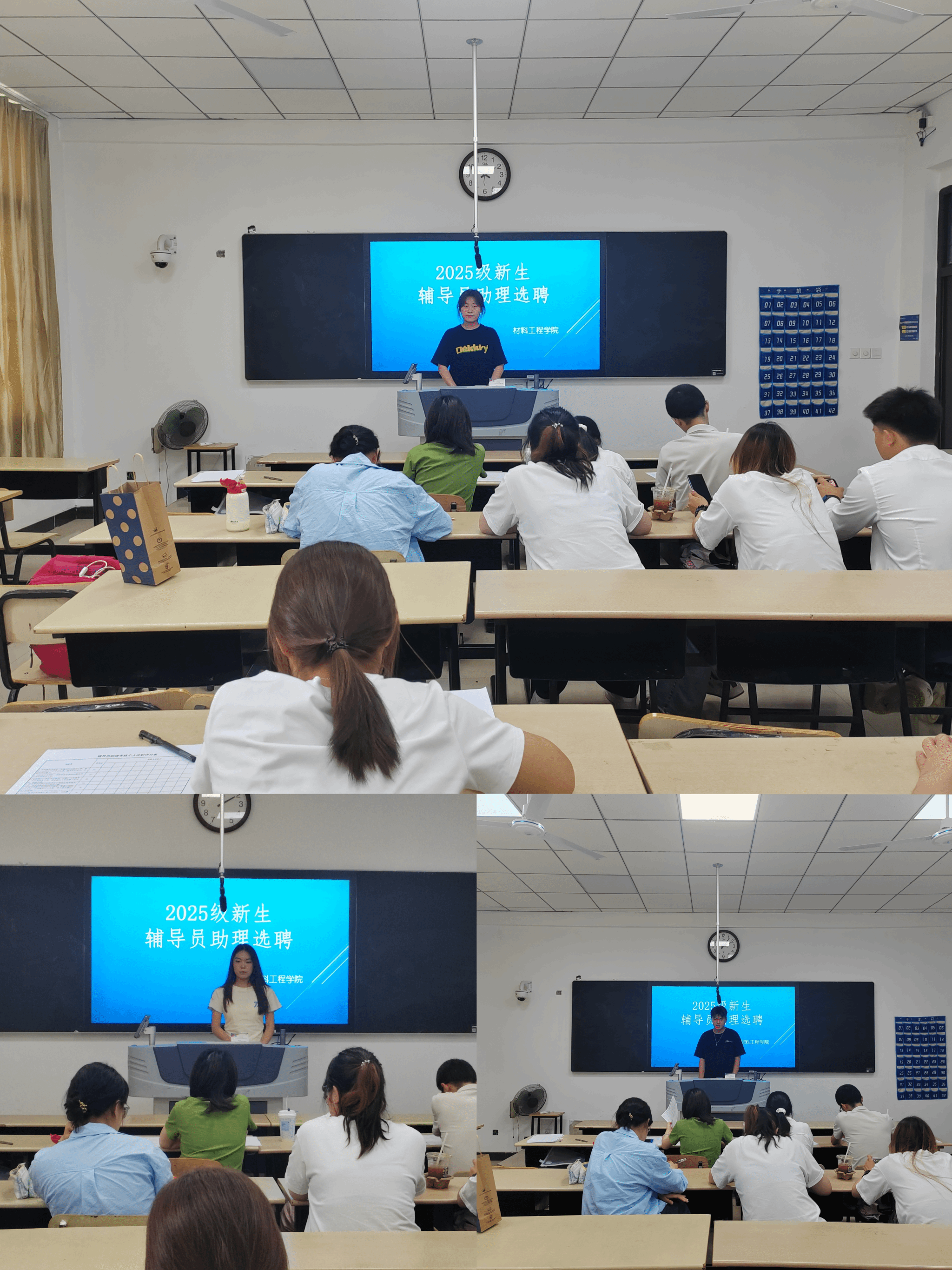 2025年5月21日下午,williamhill威廉希尔在8105教室举行2025级辅导员助理选聘面试,来自2023级、2024级的40余名优秀学子参与竞选。本次选拔秉持“实事求是、客观公正、民主公开、注重实绩”的原则,旨在通过选拔兼具学业能力与管理素养的学生骨干,强化低年级学风建设与思想引领,构建“高年级带低年级”的全员育人格局。