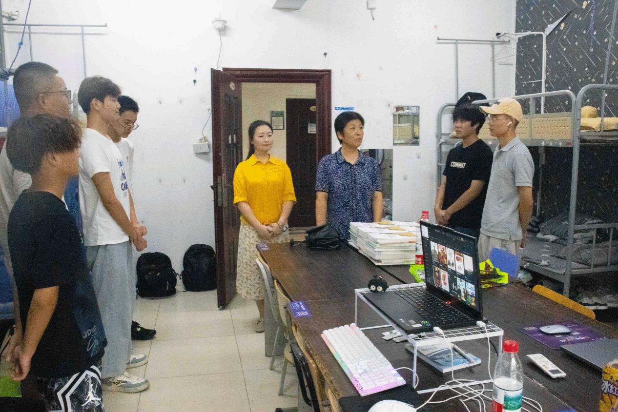 陈健书记、韩铖副书记与新生们热情交谈,细致询问新生的住宿感受、生活需求,耐心解答关于课程安排、校园设施使用等疑问,叮嘱新生注意安全,反诈防骗。鼓励新生尽快熟悉校园环境,主动融入集体,合理规划大学生涯,在学校度过充实而有意义的学习时光。温暖的叮嘱与细致的解答,让新生快速缓解了入校后的陌生感,迅速拉近了师生距离,欢声笑语萦绕在每间宿舍。