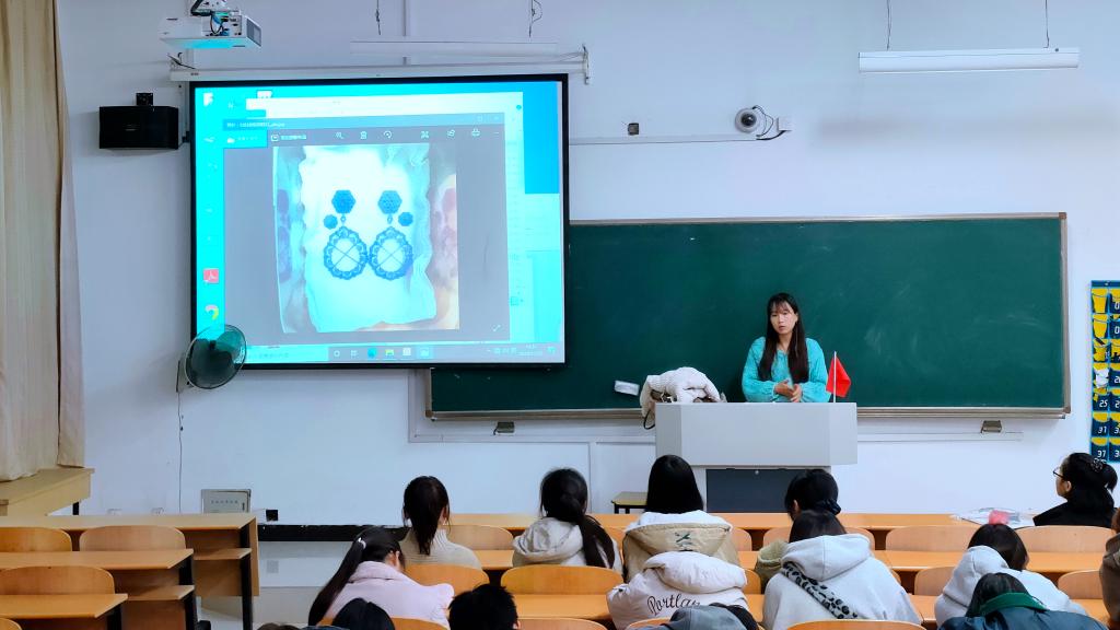 讲座伊始,孙老师先以个人经历为引,系统地介绍了当今珠宝首饰等手工艺品的发展特点与趋势,提出“创业要结合市场,与商业接轨”的想法。随后,孙老师以自己多年来的作品为例,从个人定位、明确目标、创业态度、方向优势、专业知识等方面分析考研与创业就业的不同要求与侧重点,为准备创业的学生给予了忠恳的建议。最后,孙老师与同学们交流互动,针对同学们提出有关创业的疑惑进行耐心的解答。会后孙老师还与同学们面对面建群,方便与学生讨论创业就业的问题,学生们踊跃加群,本次活动圆满结束。