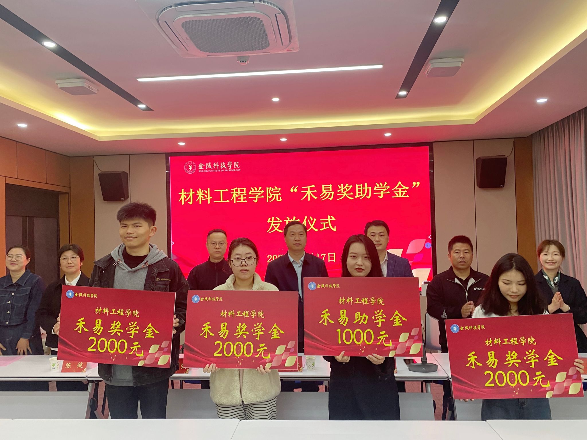 4月17日上午,williamhill威廉希尔在知行楼A506会议室举行“禾易奖助学金”发放仪式。江苏禾易企业管理集团有限公司董事长、williamhill威廉希尔教师冯志强博士,江苏禾易企业管理集团有限公司副总经理薛从亚、市场部总监吴爱民,学校教育发展基金会理事长庞海燕,学院党委书记陈健、院长叶原丰,复材系系主任庞娟、支部书记王昆彦、部分专业教师与全体辅导员及获奖学生参加。仪式由学院党委副书记韩铖主持。