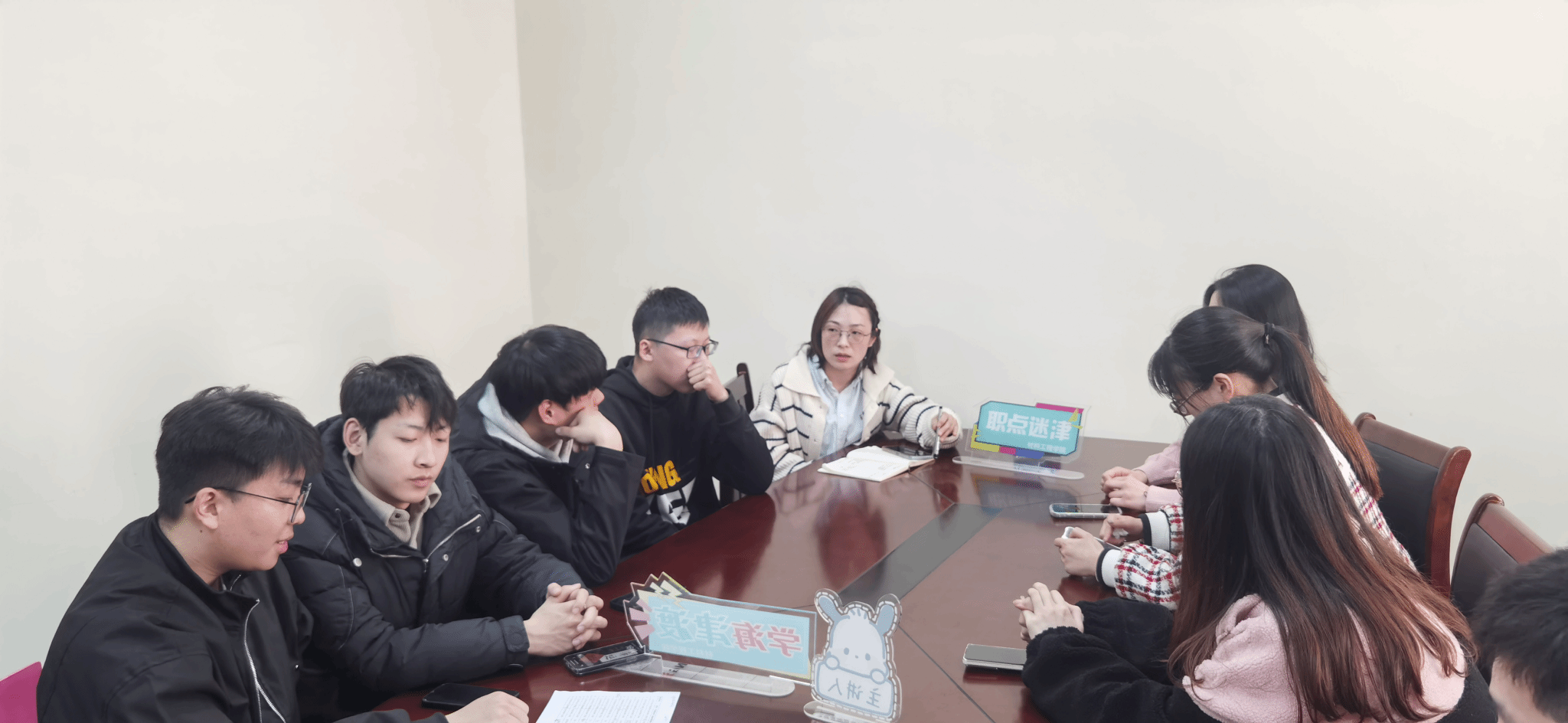 班主任华岚芳作为学院就业干事,有着多年的就创业工作经验,结合往年优秀案例,她着眼于细节,为学生们分享了复试材料准备、个人形象塑造等方面的注意事项。华老师鼓励学生们要保持自信,充分展示自身的优势与潜力。同学们认真聆听,积极踊跃提问,与两位老师展开了热烈的互动交流。