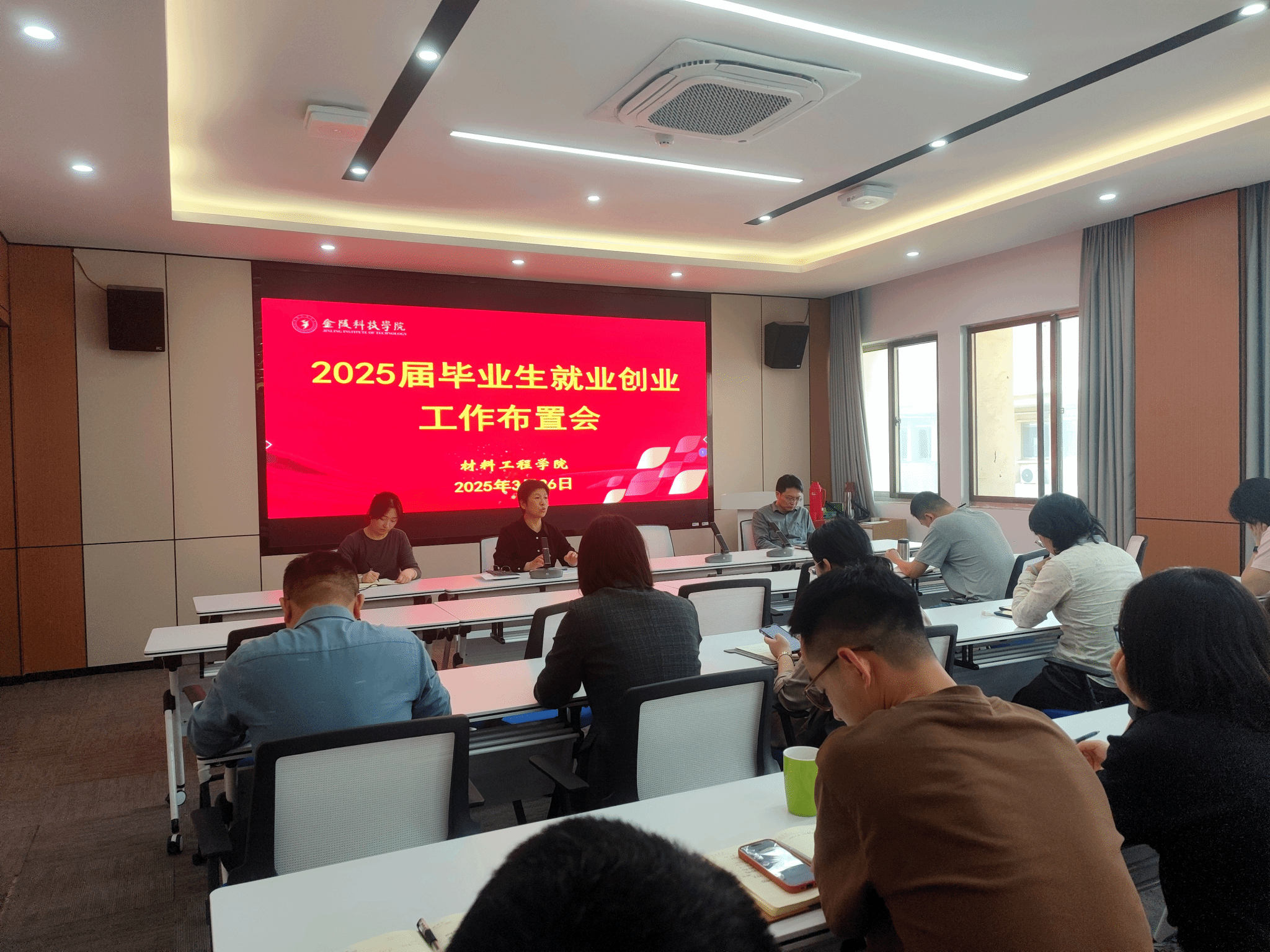 3 月 26 日,williamhill威廉希尔在知行楼 A506 会议室召开 2025 届毕业生就业创业工作布置会。学院党委书记陈健、副书记韩铖及副院长管航敏,各系支部书记、系主任,院就业干事及全体毕业班辅导员、班主任参加,共同为毕业生就业工作献计献策。会议由陈健书记主持。