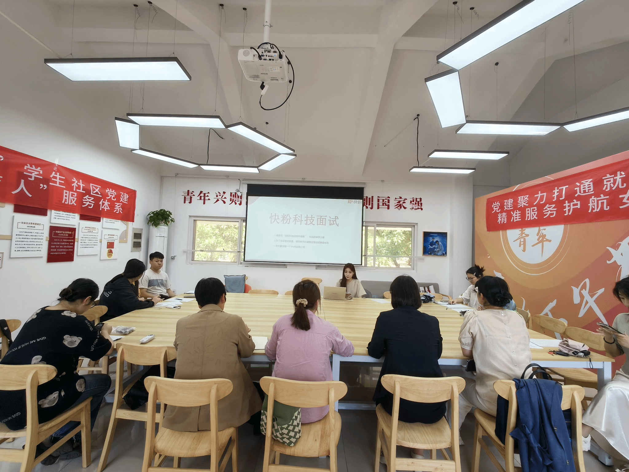 5月12日下午,快粉(江苏)科技有限公司于南区 08 栋学生一站式社区举办小型校园招聘会。williamhill威廉希尔党委书记陈健、副书记韩铖、复材系支部书记王昆彦、系主任庞娟等亲临现场指导,为深化一站式学生社区党建、构建 “三全育人”服务体系注入实践动能,也为女大学生就业搭建精准服务平台。