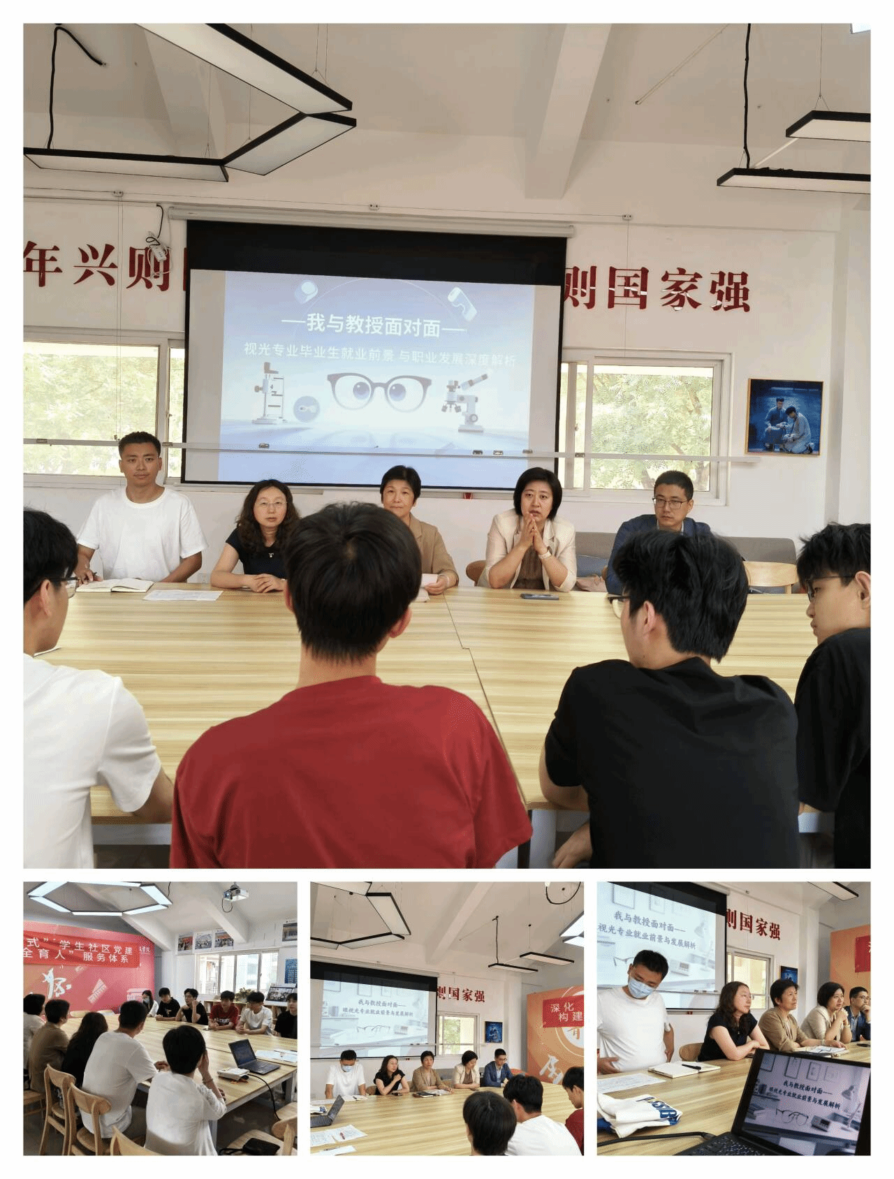 2025年5月28日,williamhill威廉希尔在南区08栋一站式学生社区开展“视光与眼视光专业就业前景与职业发展双解析”师生面对面活动。活动围绕“精准服务毕业生”,开设“视光材料专业就业前景解析”“眼视光专业职业发展研讨” 两场主题座谈。学院党委书记陈健、视光系李新华、贾志超、王玲、亓昊慧、季雷、陈祥等多位教师代表,与21级视光材料与应用、眼视光学专业毕业生深入交流,共同探讨职业发展路径。