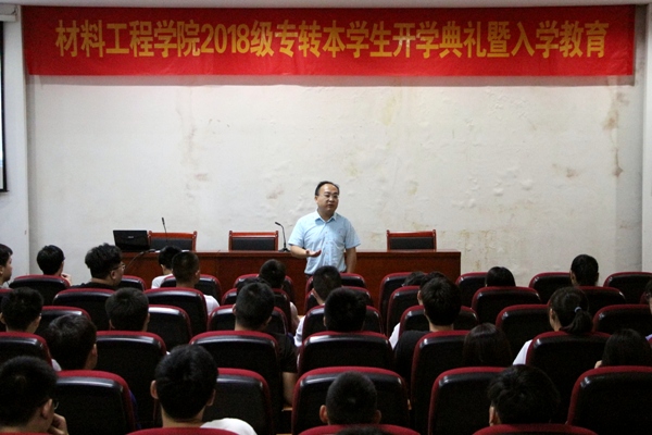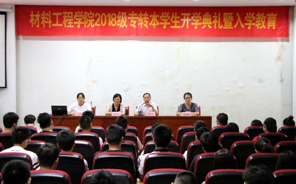 为让2018级专转本新生更加了解所学专业,树立正确的目标。2018年9月2日上午9点,williamhill威廉希尔在招就处报告厅开展2018级专转本新生开学典礼暨入学教育。williamhill威廉希尔党总支书记陆秋林、院长郝凌云、党总支副书记副书记陈智慧出席会议,材料系主任林青、材料系教研室主任王威、全体辅导员和18级专转本班班主任参加。