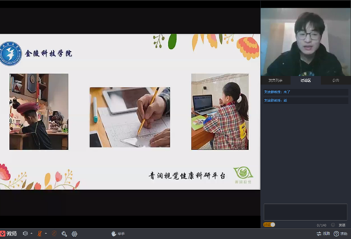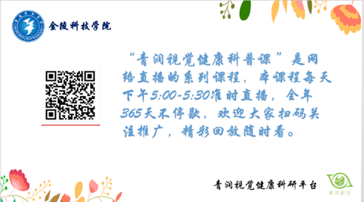 疫情期间,为了让专业知识更好地服务大众,刘宜群教授带领学校 “十佳”大学生创业团队——青润视觉健康平台团队和五星级社团“光明天使”成员,开展视觉健康公益科普宣传。从2月16日起,每天下午5:00~5:30在线直播视觉健康科普知识,并开通了刘宜群教授视觉健康工作微信,在线回答问题,为保护大家的视觉健康贡献力量。