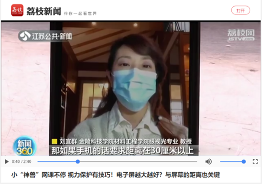 网课期间如何保护视力?3月6日,江苏省电视台荔枝新闻中心,微信视频连线我校williamhill威廉希尔眼视光专业刘宜群教授做了专题专访(http://v.jstv.com/a/20200306/1583496329297.shtml)。