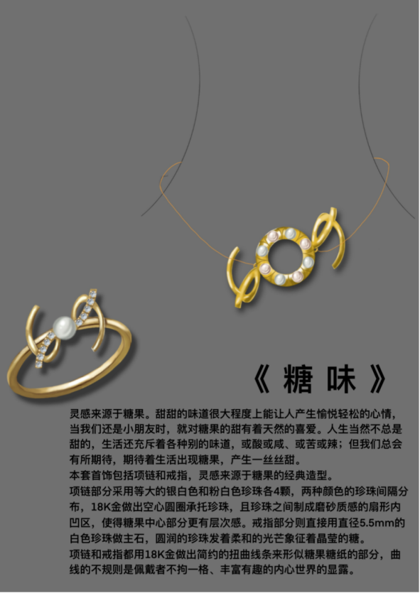 王馨悦同学本次是第二次参加宝庆举办的珠宝设计比赛,她表示很荣幸地拿到了优秀奖。首先需要感谢设计指导老师的悉心指导,其次是感谢专业——珠宝设计。在有比赛截止日期的压力下,能带动创作的动力,并且培养对于日常中灵感的捕捉能力,对于生活上细微的观察能力。陆栩沁同学是第二次获得优秀奖,她认为比赛是一个不断丰富自己创作经验,提高自己设计能力的一个机会。纪童同学在这次比赛过程中接触学习到了很多新知识,她在准备设计主题时搜集了很多资料,了解到许多珠宝有关的历史和文化,在绘画设计稿的时候她对调节整件珠宝作品的比例有了更多心得。她说:“很感谢主办方宝庆银楼给予的比赛展示平台,以及指导老师给予的建议,能获得奖项我深受鼓励,坚定了我设计珠宝的信心,未来也会一直在这条路上不断努力,争取做得更好。”