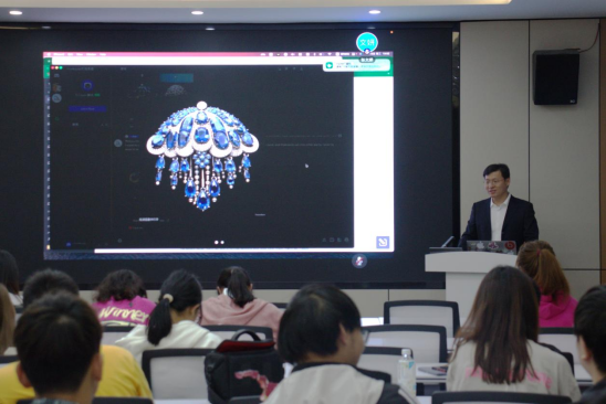 本次课堂的主题为“ChatGPT与珠宝”,蔡逸涛主要从构建智能体系、学习使用方法、应用技术手段三个方面来进行讲解,着重展示如何利用人工智能在宝石学习、珠宝首饰设计、珠宝视频拍摄等场景中的应用,包括视频脚本、课堂活动教案、MJ生成珠宝首饰设计图等,内容详实,生动有趣,互动热烈。在现场互动过程中,同学们就讲座内容及自己学习中实际遇到的问题进行提问,蔡逸涛逐一进行了耐心细致地解答,参会同学们纷纷表示受益良多。最后,师生一起就示范场景分析了 ChatGPT 的应用风险,提出了相应的风险防控措施,并希望同学们面对ChatGPT的快速发展应保持清醒头脑,不要放弃思考,坚持每日进步,不断朝着梦想前进。