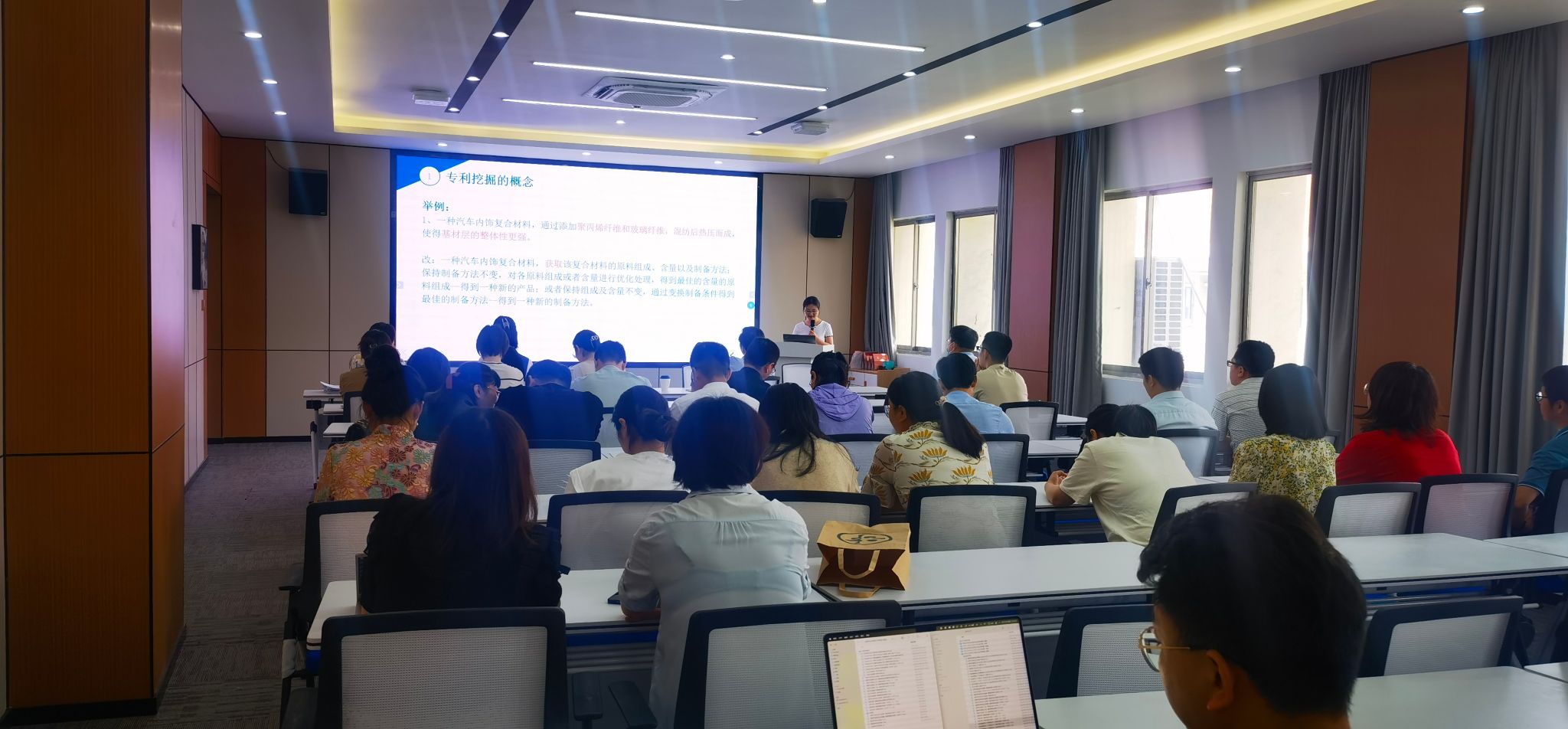洪黎老师结合自身经验,讲解了新材料技术专利挖掘的概念、挖掘的意义、以及挖掘的类型。课上通过通俗易懂的案例,深入浅出地介绍了如何形成发明构思,如何从技术问题、技术手段、技术效果等方面形成技术方案。