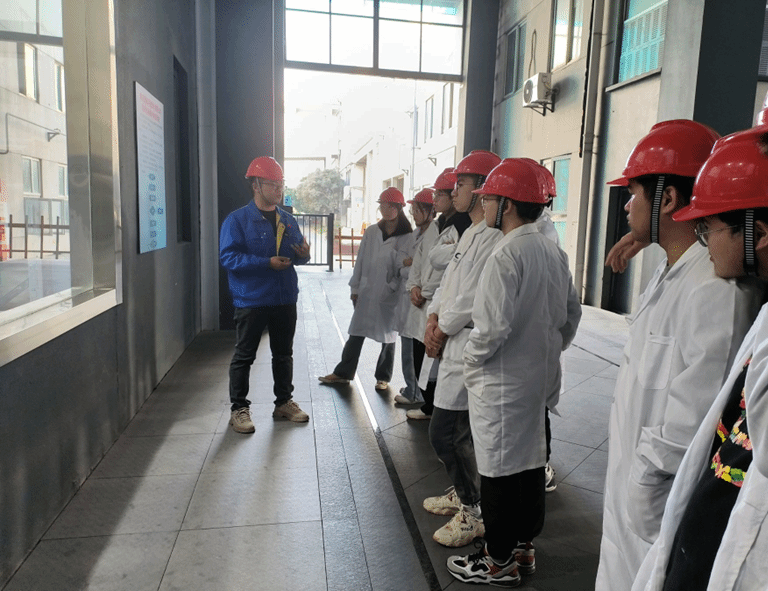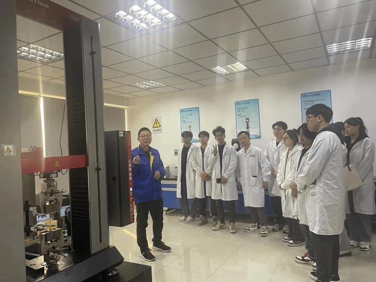 在这两家复合材料行业优质企业参观实习期间,在工程师的指导下,学生们参观了企业的生产部门和质检部门,见习了复合材料的研发、生产和检测过程,见习了先进的生产设备和严谨的生产流程,深刻体会到了企业对产品质量的严格要求。此外,学生们还与企业的技术人员进行了交流,了解他们在生产过程中遇到的技术难题以及解决问题的方法,进一步掌握了复合材料在航空、航天、建筑等领域的广泛应用,这对于学生今后的学习和工作具有很大的启发意义。